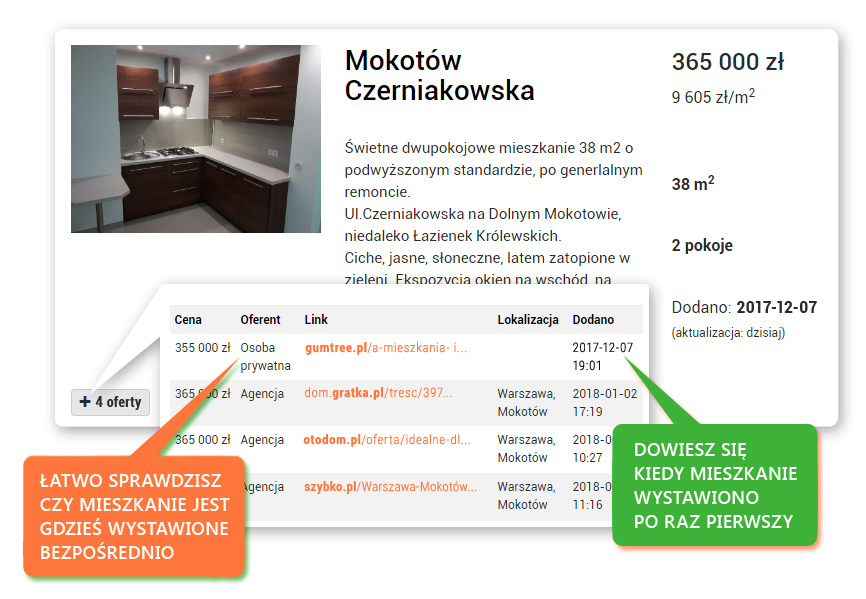Ponadto sprawdzisz pełną historię oferty:- Kiedy dane mieszkanie zostało wystawione po raz pierwszy?